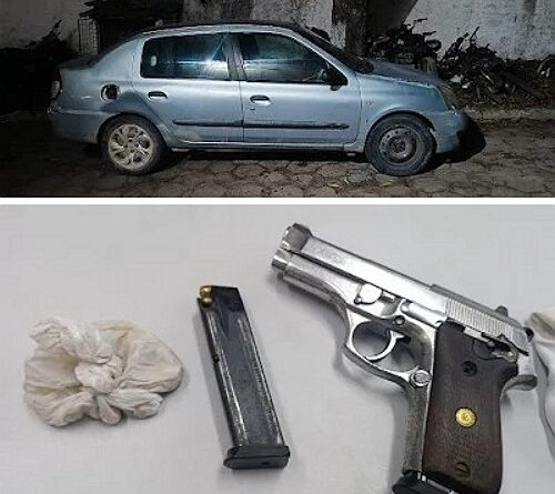 Com base em informações repassadas por moradores, policiais montaram um ponto de observação na entrada de Ribeirão. Durante a ação, o Spin foi avistado e passou a ser acompanhado. Um menor desceu do veículo armado e tentou fugir a pé, mas foi alcançado dentro de uma residência. Com ele, a PM encontrou uma pistola calibre 380, carregador extra, além de 61 pedras de crack, 57 invólucros de maconha e dinheiro.