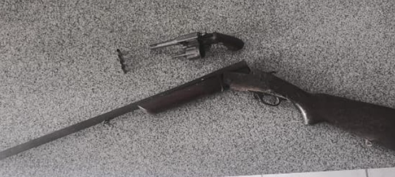 Durante as diligências, foram apreendidos um revólver calibre 38 com munições e, em seguida, uma espingarda calibre 20 contendo uma munição deflagrada. Apesar das buscas intensificadas, o suspeito conseguiu escapar e não foi localizado.