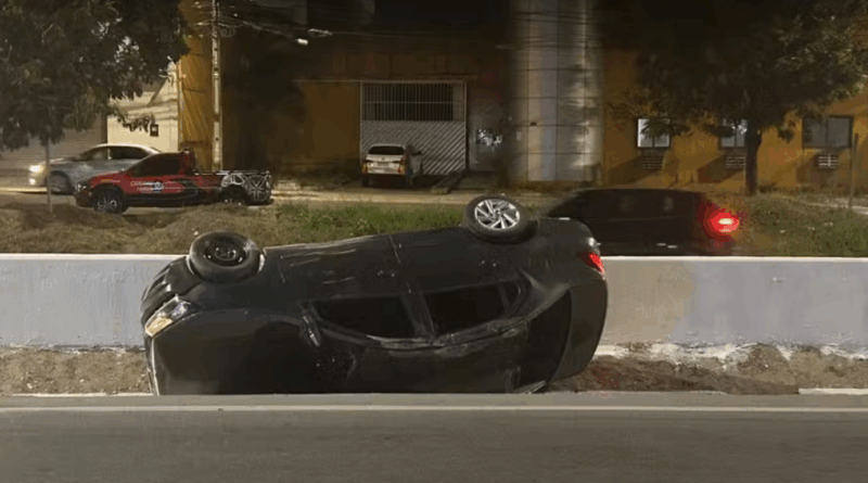 Carro roubado capota e motorista foge na BR-104 em Caruaru