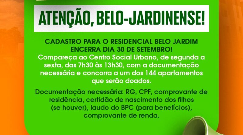 Read MoreA Prefeitura de Belo Jardim, por meio da Secretaria de Assistência Social, informa que o prazo para o cadastro das famílias