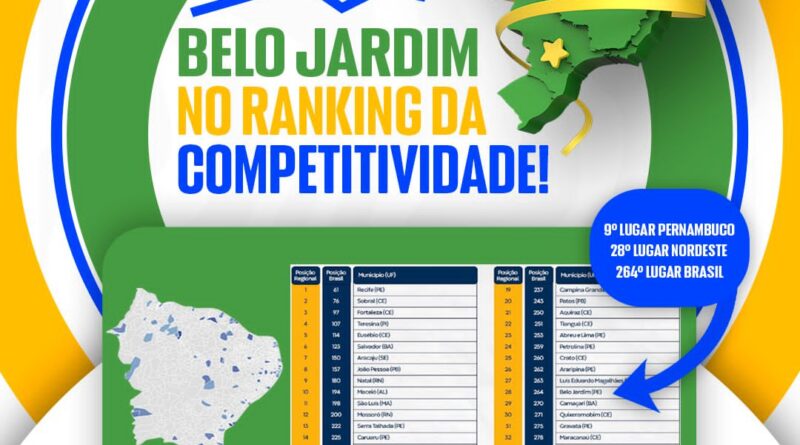 Belo Jardim avança e se destaca no Ranking dos Municípios mais Competitivos do Brasil