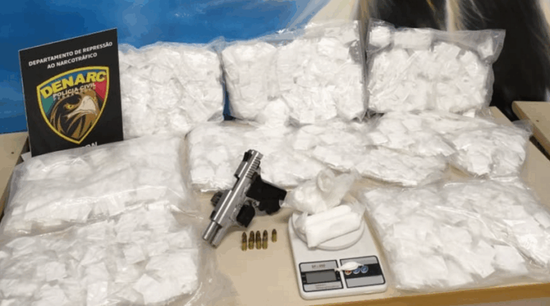 No imóvel, os agentes foram recebidos por Pauline, que autorizou a entrada e revelou o local onde estavam escondidas mais porções de c0c@ín@ e uma pistola calibre 380. A mulher confirmou que atuava junto com o marido no tráfico de dr0g@s, obedecendo ordens de João Paulo da Silva, conhecido como “JP”, integrante do Primeiro Comando da Capital (PCC), atualmente preso em São Paulo. Pauline informou ainda que naquele dia receberiam uma carga de c0c@ín@ trazida do estado paulista.