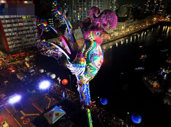 Um dos momentos mais aguardados pelos pernambucanos e turistas ocorreu nesta quarta-feira (11). O Galo Gigante, localizado na Ponte Duarte Coelho, área central da capital pernambucana, foi erguido com um evento que simboliza a abertura do Carnaval do Recife reunindo música, dança e tradição.