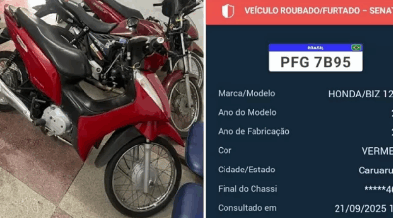 De acordo com a corporação, o veículo — uma Honda Biz 125 — chamou a atenção dos policiais por estar com uma placa artesanal, fora do padrão do Detran-PE. Durante a vistoria, os policiais também verificaram que a numeração do motor apresentava sinais de adulteração.