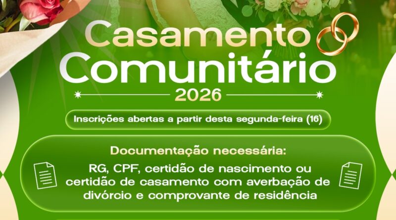 A Prefeitura de Belo Jardim, por meio da Secretaria de Assistência Social, abre na próxima segunda-feira (16) as inscrições para o Casamento Comunitário 2026. A iniciativa tem como objetivo proporcionar a oficialização da união civil de casais do município de forma gratuita, garantindo acesso a um momento especial e fortalecendo os vínculos familiares. As inscrições seguem até completar a quantidade de vagas estabelecidas pela secretaria.