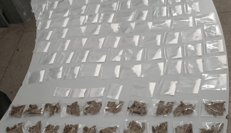Durante a ação, um homem que estava dentro do imóvel fugiu pulando o muro do quintal e, durante a fuga, dispensou uma bolsa contendo 122 invólucros de c0c@ín@ e aproximadamente 35 gr@m@s de m@c0nh@.