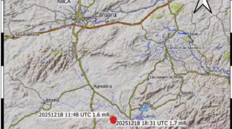 Oito eventos sísmicos são registrados em Agrestina; maior deles registra 1,7 na magnitude Ritcher