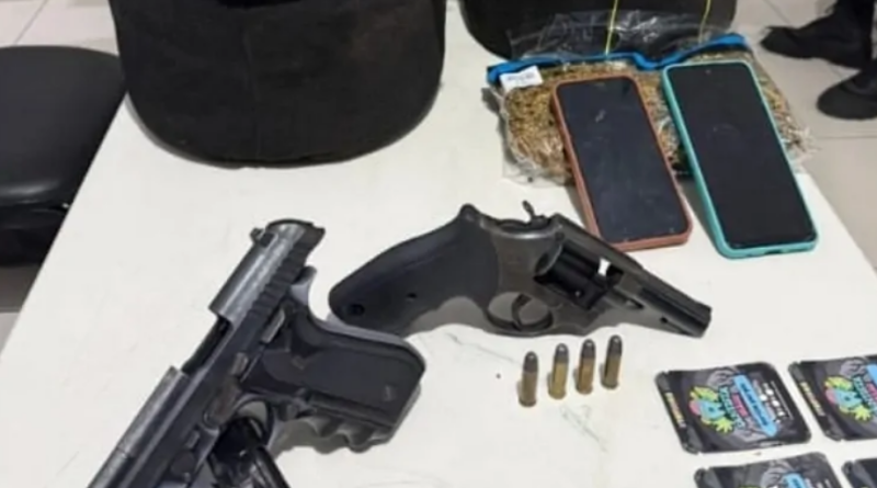 No imóvel, a PM também apreendeu um revólver calibre .38, contendo quatro munições do mesmo calibre, e uma pistola calibre .380, acompanhada de 10 munições intactas.