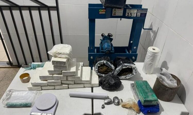 No total, foram apreendidos com a dupla 18kg de cocaína, 1,7kg de crack, 1,3kg de maconha, uma prensa hidráulica, uma balança de precisão e dois litros de ácido.