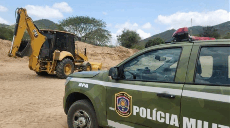 Policiais militares do Batalhão de Policiamento Ambiental (BPAmb) flagraram, nesta quarta-feira (24), uma extração irregular de areia na zona rural de Caruaru, Agreste de Pernambuco. A ação ocorreu após denúncia de caça predatória no povoado Fundão.