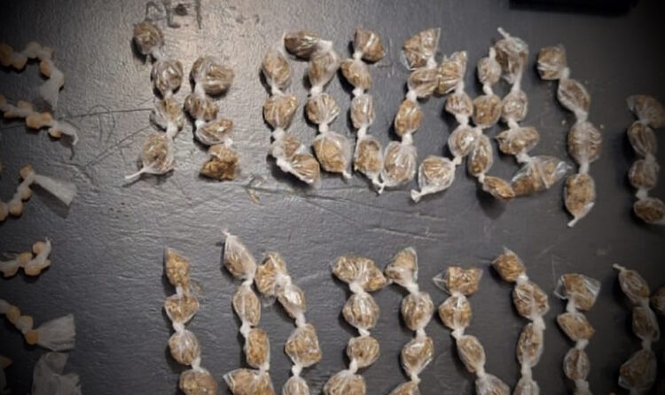 Diante da situação, o efetivo seguiu até o local para averiguar a denúncia. Ao perceberem a chegada da polícia, os suspeitos fugiram em direção a um matagal que fica por trás da Laje. Durante a fuga, um dos indivíduos deixou cair um pacote.