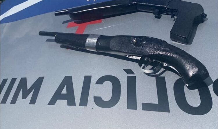 Durante a ação, os policiais apreenderam duas armas de fogo, sendo uma de calibre 32 e outra de fabricação artesanal. Questionados, os dois homens assumiram a posse das armas.