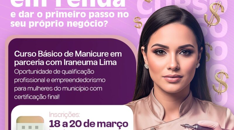 A formação será realizada ao longo de quatro quartas-feiras, com início no dia 25 de março, das 8h30 às 11h30, também na sede da secretaria. A iniciativa tem como objetivo promover a qualificação profissional de mulheres do município, incentivando a inserção no mercado de trabalho e a geração de renda por meio do empreendedorismo. O curso será ministrado por Iraneuma Lima, profissional reconhecida e respeitada na área, que trará sua experiência prática e conhecimento técnico para contribuir com a formação das participantes.